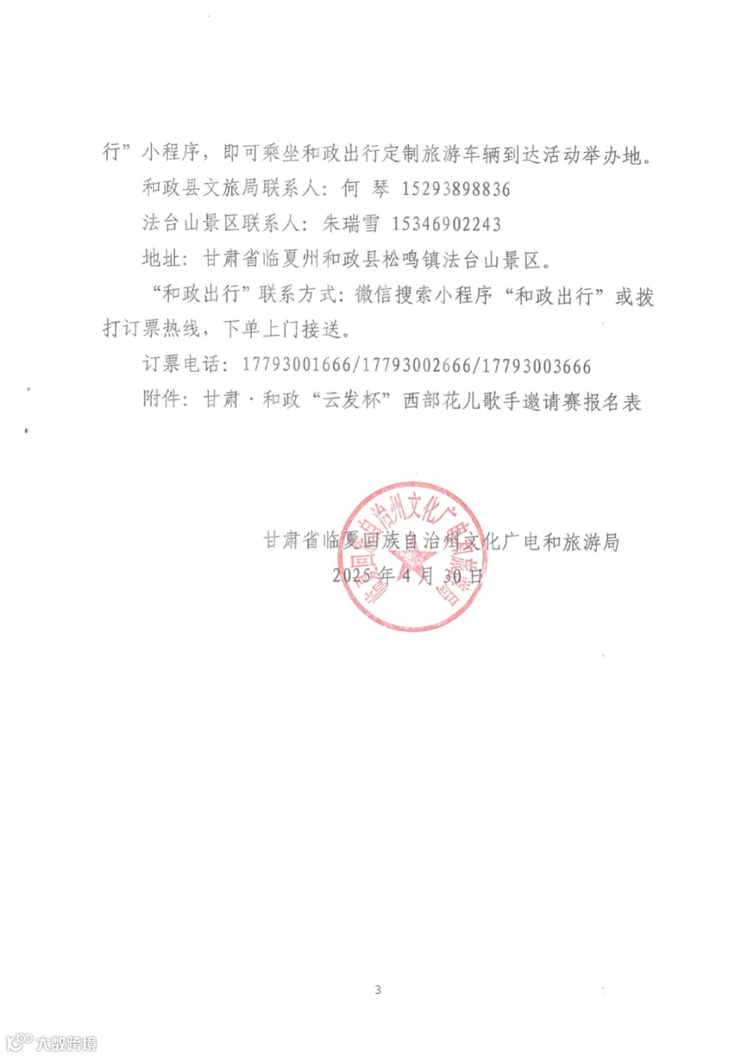 “和政出行”联系方式:微信搜索小程序“和政出行”或拨打订票热线,下单上门接送。
