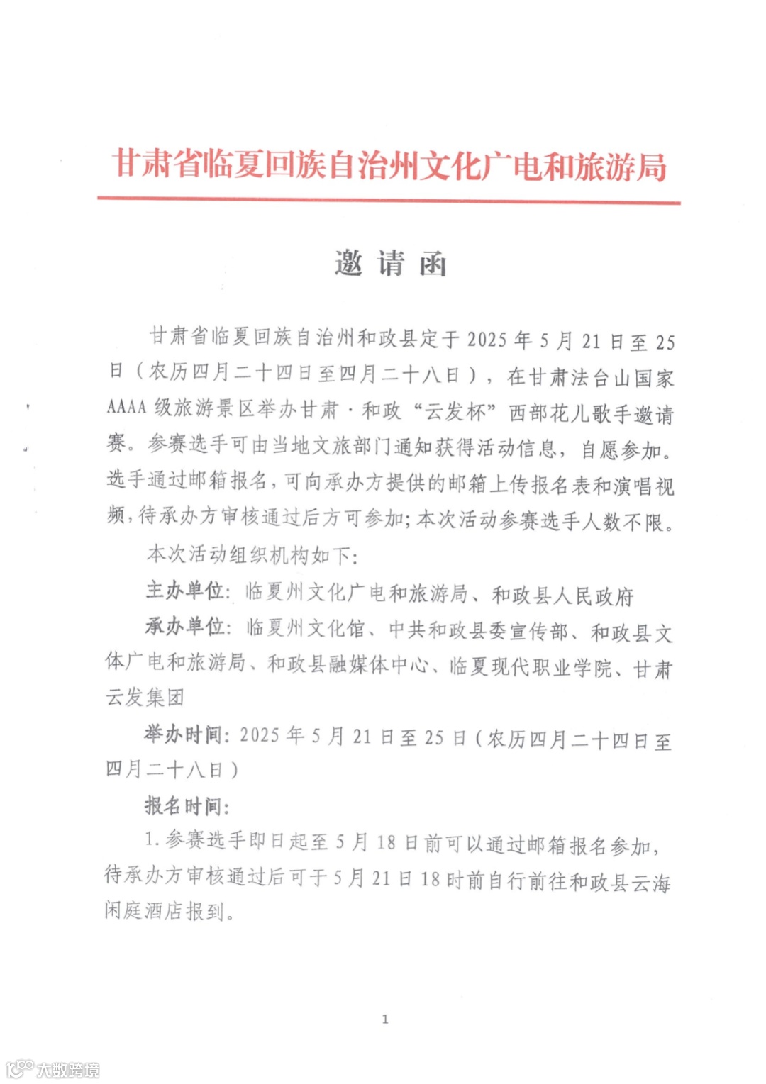 承办单位:临夏州文化馆、中共和政县委宣传部、和政县文体广电和旅游局、和政县融媒体中心、临夏现代职业学院、甘肃云发集团