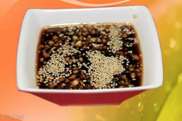 这就是咱们东北人常说的蒜酱,取香油、酱油、醋按照合适的比例调匀,在这基础上还可以依照个人口味再加其它调料。