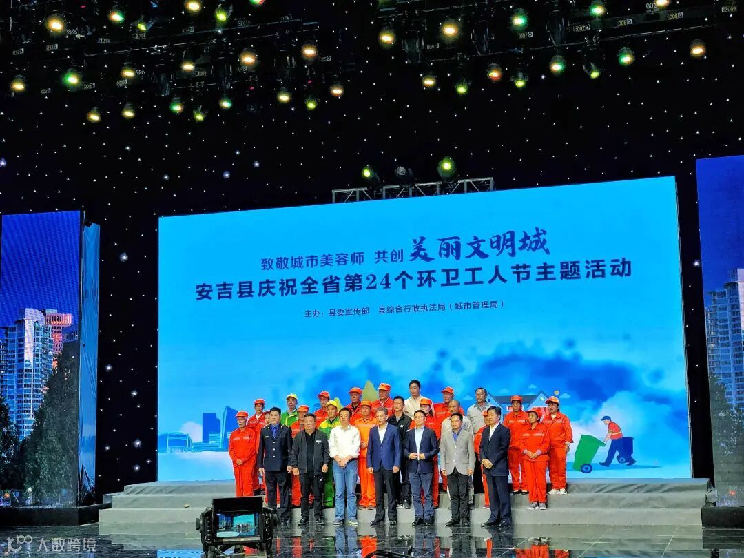 10月26日晚,安吉县庆祝全省第24个环卫工人节主题活动举行。安吉县委副书记、县长宋波致辞,县领导高发义、孙松、陈小龙、侯献荣等领导参加活动。浙江虎哥环境副总裁胡少平、安吉虎哥环境服务有限公司总经理许经纬受邀参加活动。