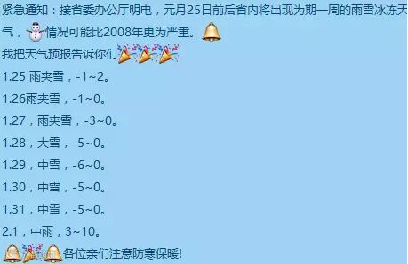 这次的雪势可能非常凶猛,你们要躲着大树、电线杆和简易棚走,也别想着打雪仗,防寒保暖最重要;搞农业的朋友,想想办法防止大棚被压;要出差的朋友,密切关注天气妥善安排行程以防高铁飞机延误。