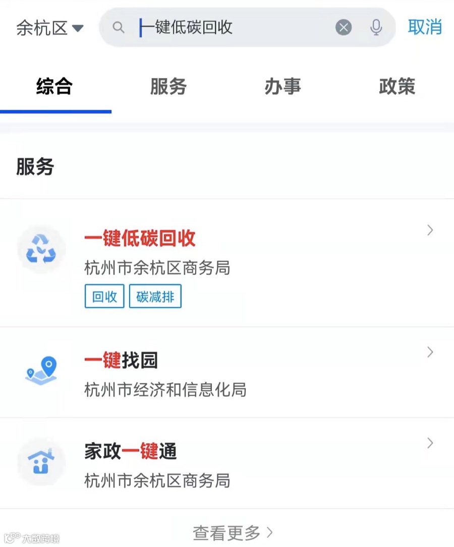 您可以在浙里办中搜索“低碳、回收”等关键词找到入口