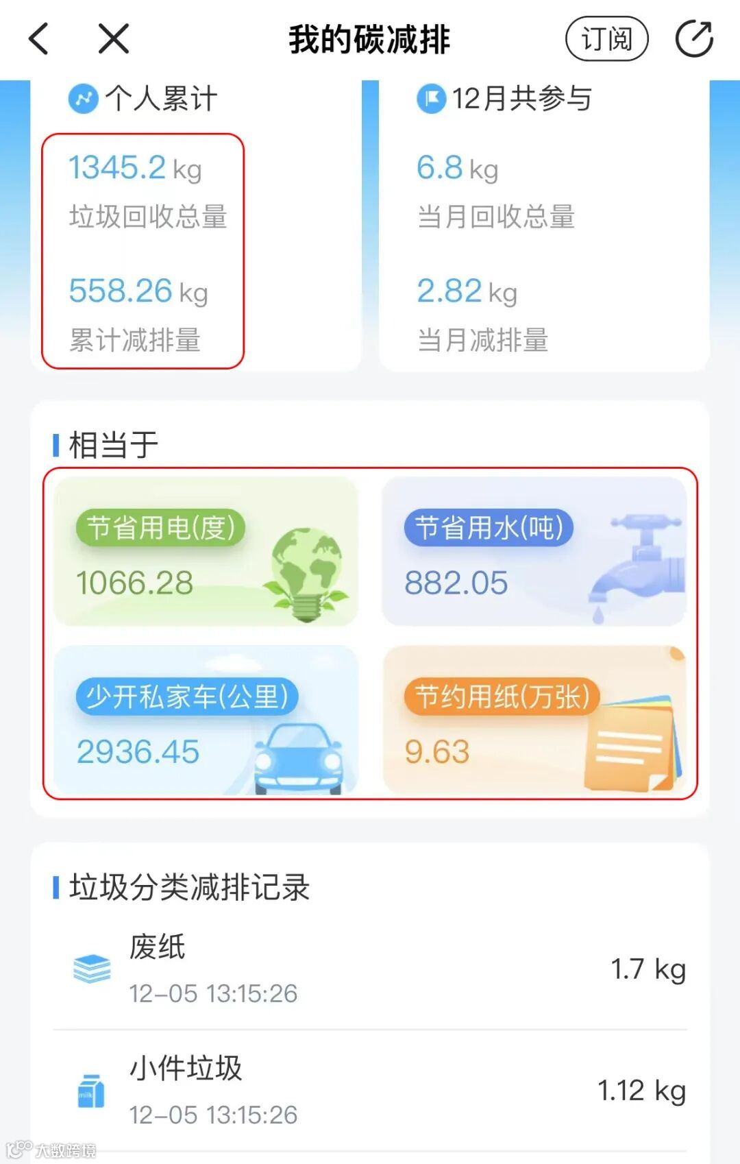 “一键低碳回收”记录您日常生活中的“碳减排值”