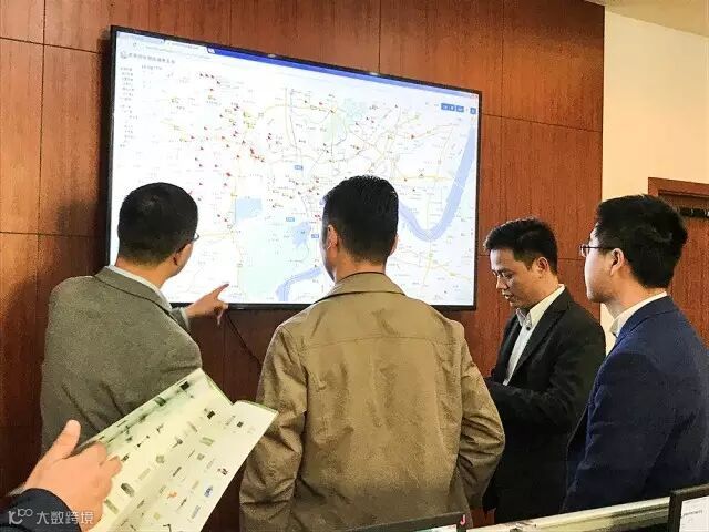 胡总向领导们展示了车辆调度系统,通过这个系统,工作人员可以清晰地监测到目前200辆虎哥车辆的路径以及订单完成情况。