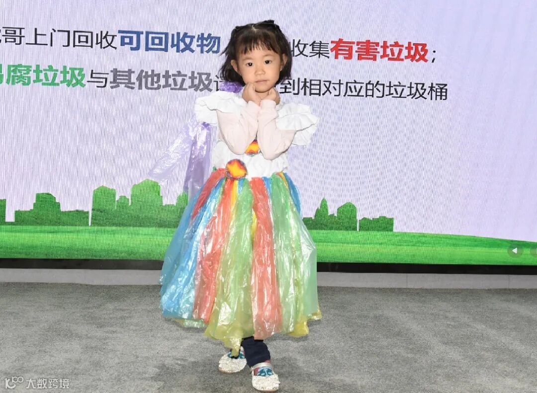 “小公主裙”用五颜六色的垃圾袋编织而成;男孩子的“背带裤”用“虎哥”袋剪裁而成;最闪耀当属小女孩的“亮片裙”,是用易拉罐制作……孩子们穿上心爱的作品,震撼全场。
