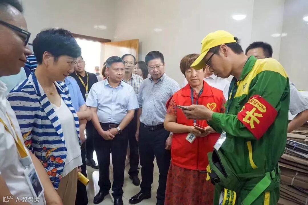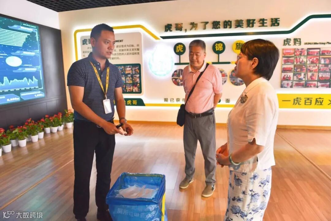 在“虎哥”大数据平台,领导团一行对大数据平台的智能化管理系统颇有兴趣,胡总介绍了大数据平台建成相关的数据情况以及技术人员情况。随后,考察团一行调研了“虎哥”分拣中心,并对分拣中心的精细化分拣以及后端的资源再利用和无害化处理表示肯定。