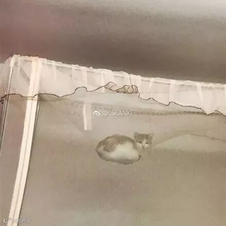 我们寝室爬上蚊帐的猫