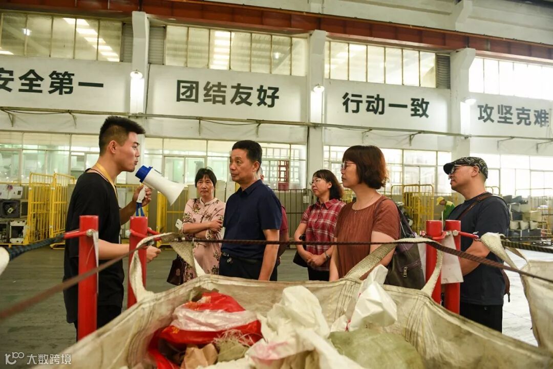 7月3日上午,区政协城建和社会法制组的近20名老干部们参观了“虎哥”分拣中心,品牌宣传部副总监唐烽为老干部们介绍工人分拣作业流水线情况。