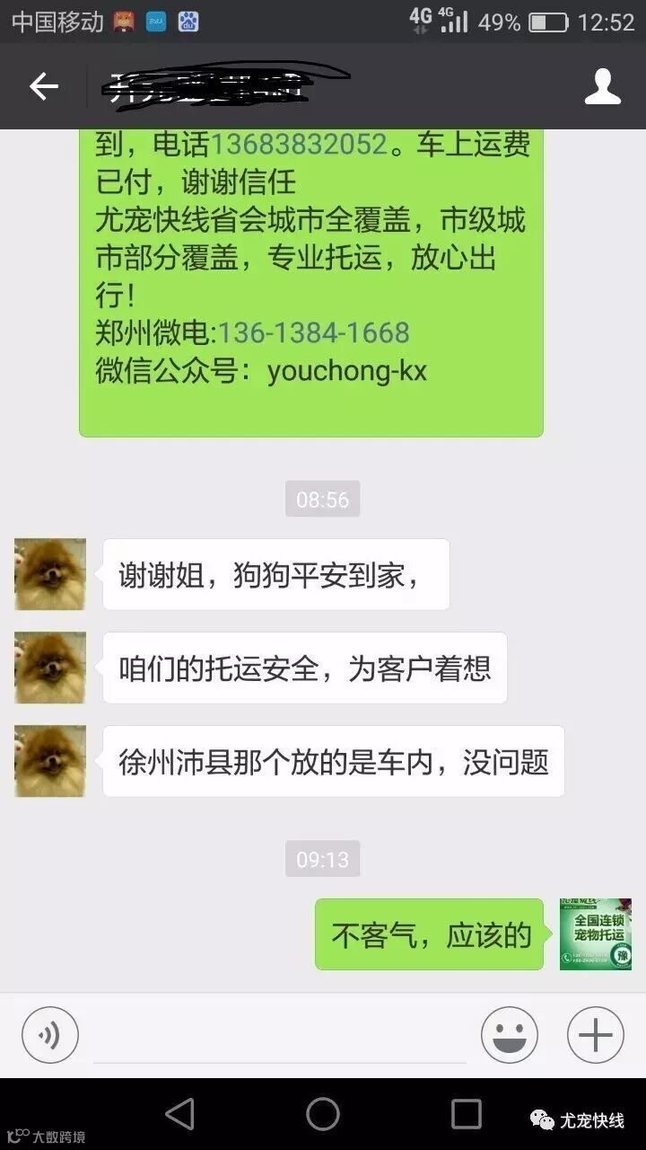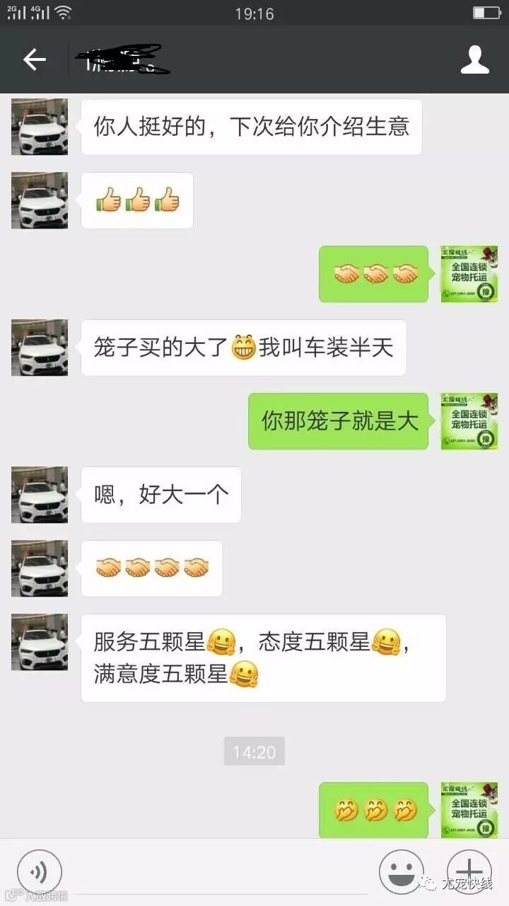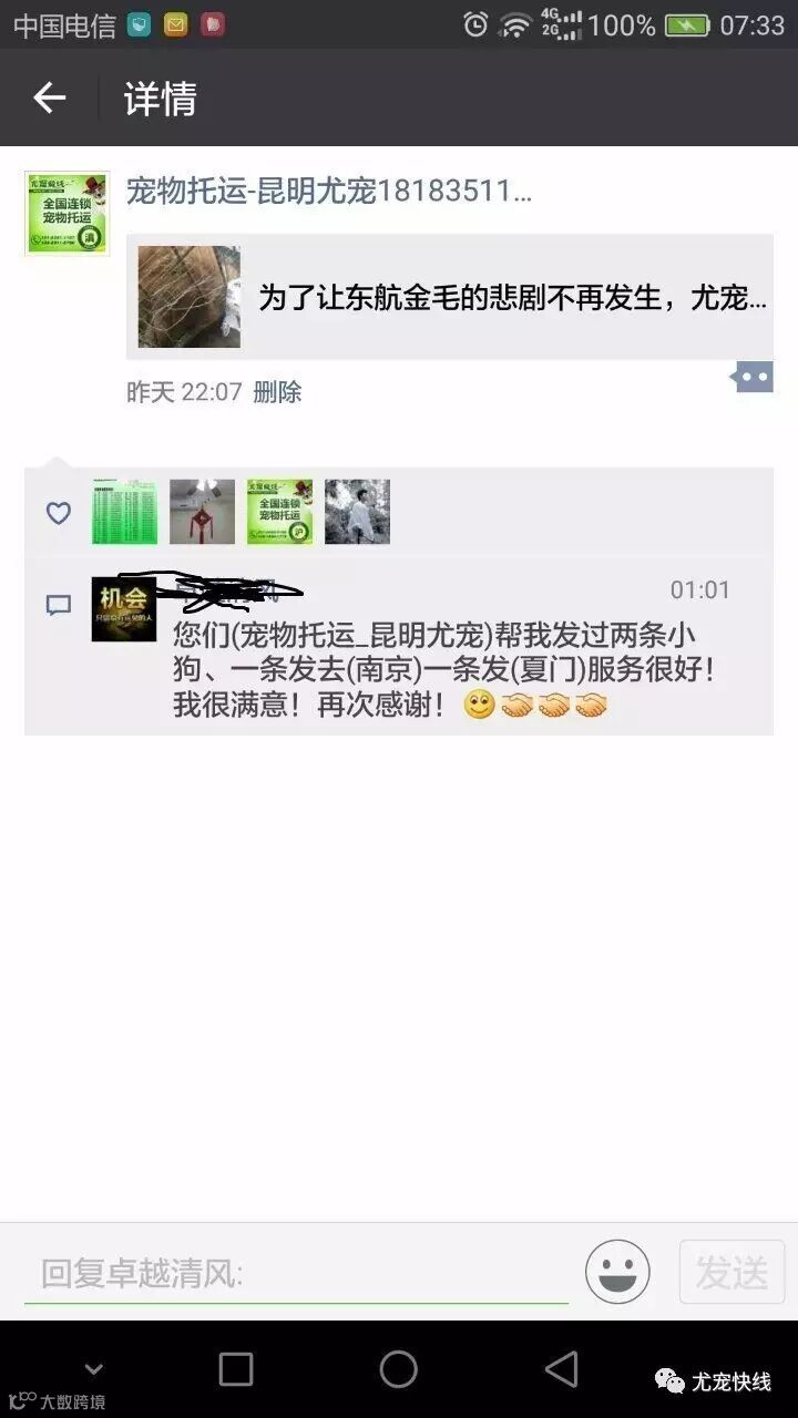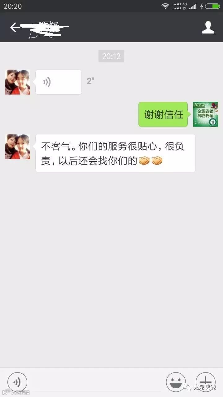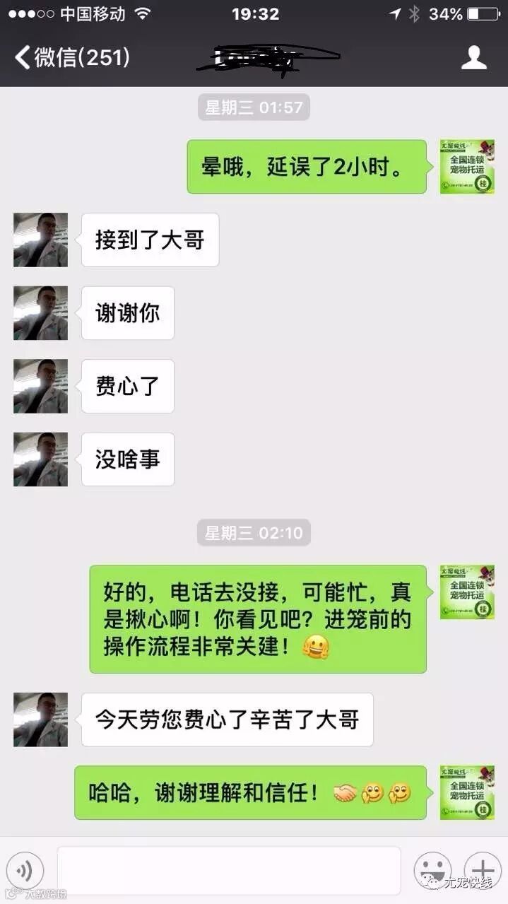 尤宠快线秉承“用爱回报信任”的企业服务宗旨,倡导宠物托运过程中的人性化、专业化,保证宠物的安全和舒适的送达,让所有的宠物爸爸妈妈放心和安心。以下是我们六月份的客户真实案例见证,为了保证客人的隐私,我们已将客人名字隐去 :