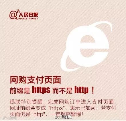 【小心!网购支付页面前缀http要警惕!】曾有网络诈骗团伙专门制作假冒购物网站,将受害者网银内的钱全部转走!特别提醒:完成网购订单进入支付页面,网址前缀会变成https,表示已加密;若支付页面仍是http,一定要提高警惕!有关网购的陷阱↓↓扩散周知,格外小心!