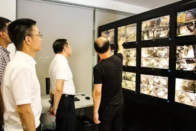 在虎哥回收拆解基地的监控室内,浙江盛唐环保科技有限公司总经理强毅为领导们展示了处理拆解流水线过程。