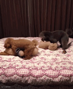 只见我家狗一个箭步冲上床
