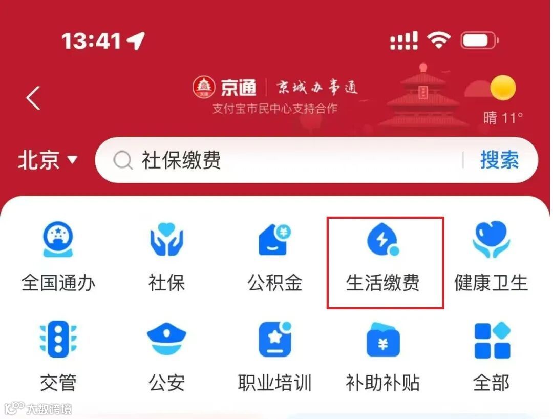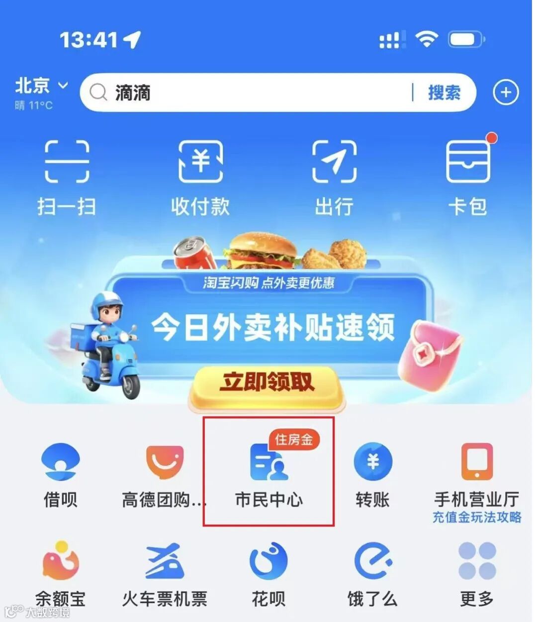 (1)打开支付宝→市民中心