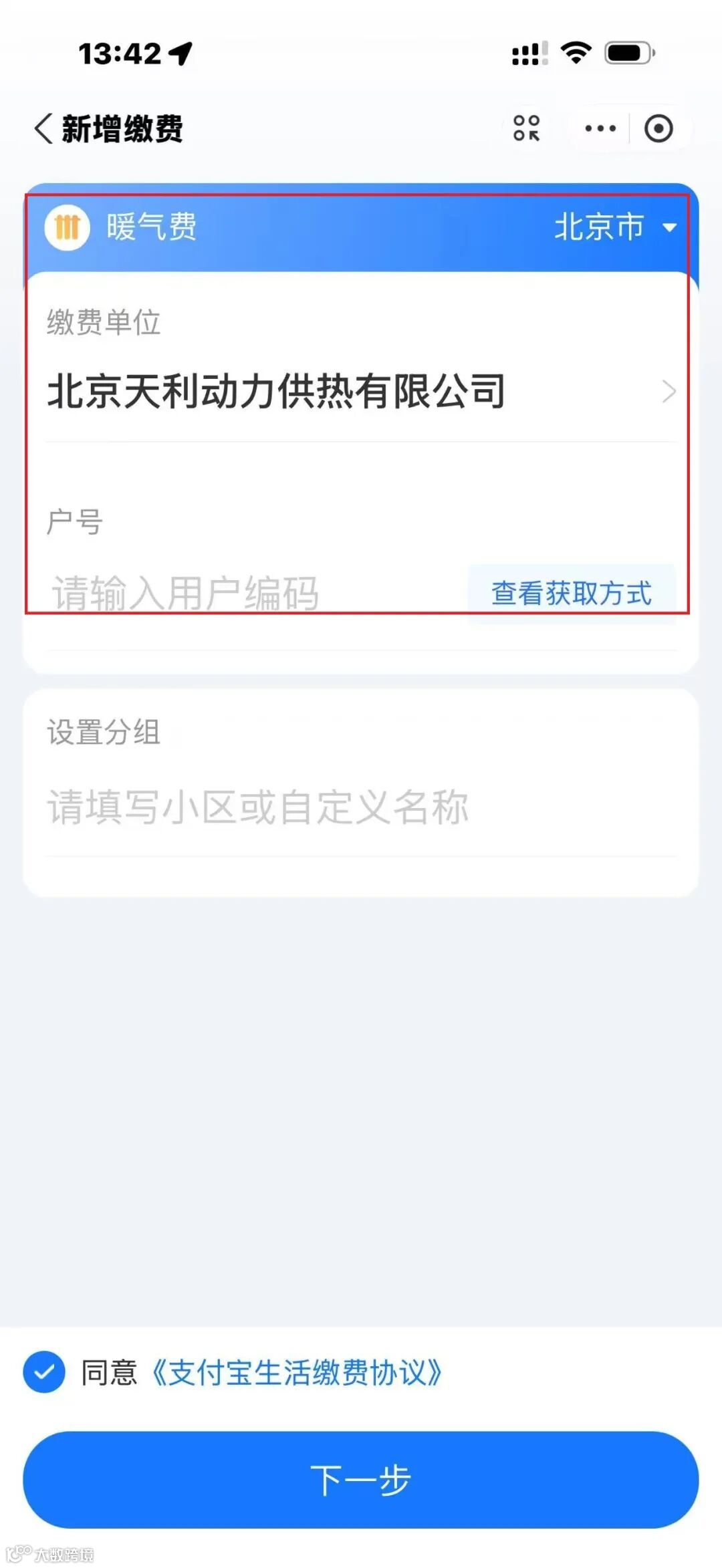 (6)北京天利动力供热有限公司→输入住户编码