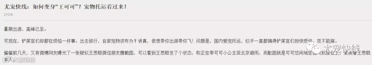 尤宠快线:如何变身“王可可”?宠物托运看过来!