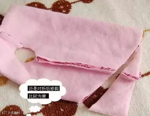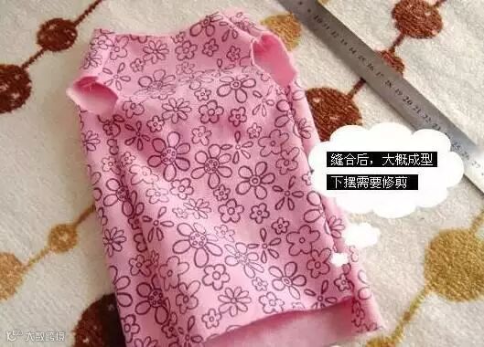 ▼把T恤的后备往上修成弧形,具体以不遮住狗狗的尾巴为准,剪掉多余部分以后重新包边