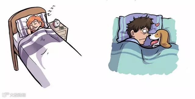 喜欢狗狗的人可以拥有自己的大床,想怎么翻身就怎么翻身,一般他们喜欢狗但是不会去养狗,所以睡得都很舒适。
