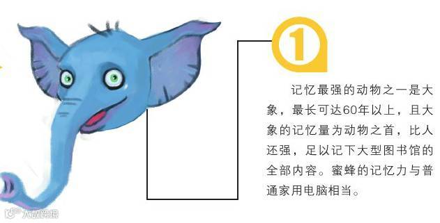 记忆力最强的动物之一是大象,最长可达60年以上,且大象的记忆量为动物之首,比人还强,足以记下大型图书馆的全部内容。蜜蜂的记忆力与普通家用电脑相当。