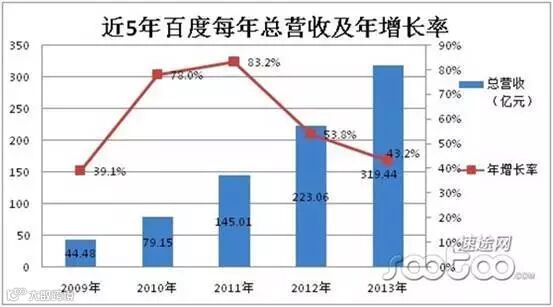 相对于腾讯、阿里的稳步增长,百度虽然前进速度不慢,但总有些让人有过山车的感觉。百度的黄金期也在2010年、2011年、2012年,分别保持了77.95%、83.21%和53.82%的增长速度。李彦宏也在这期间,蝉联了三年的中国首富。