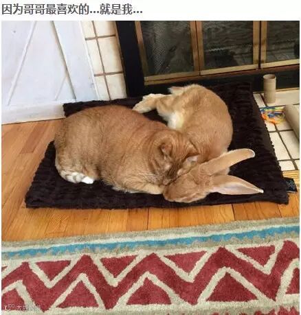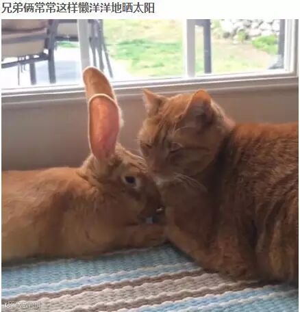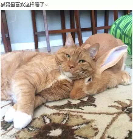 猫咪照顾兔小弟 最爱把兔兔当枕头
