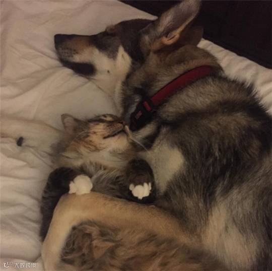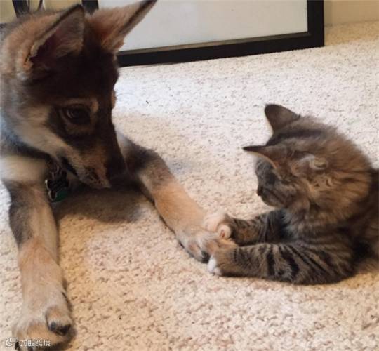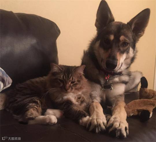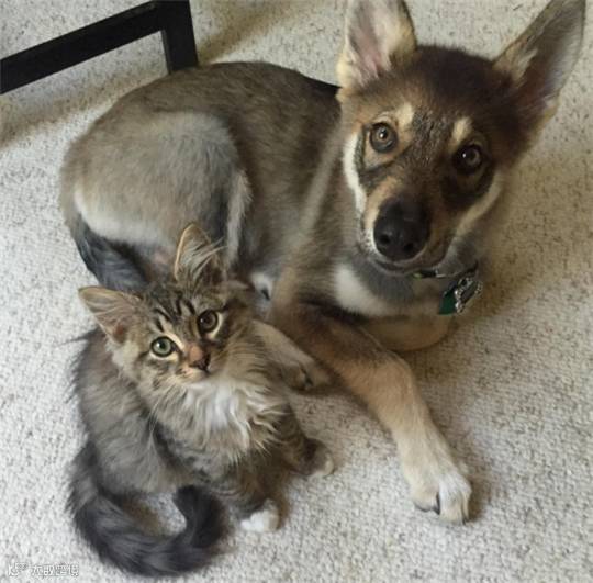 狗狗叫做乌鸦,10周大,原本是一只流浪狗,被现在的主人带回家收养。喵星人叫做瑞文,主人很早以前收养的流浪猫。