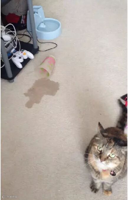 非得把主人的水杯打翻...