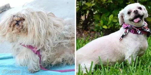 大概有2磅的毛从这只可怜的小狗身上被剪掉。虽然因为毛都占道了一起,导致剃毛过程有点艰难,但是它还是很乐意从身上除掉这些。现在它已经做好了一切准备,开始新的生活了。