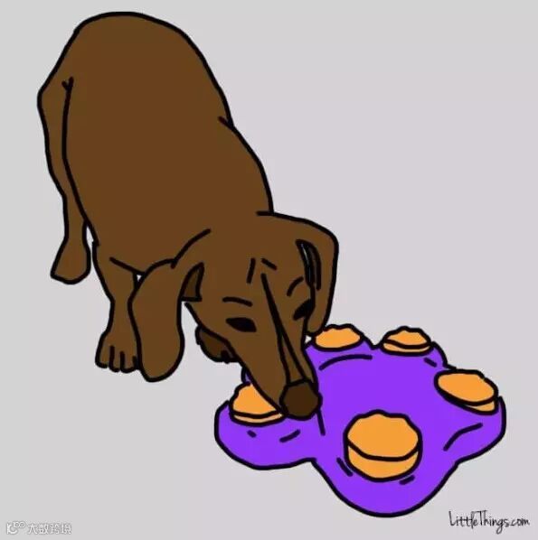 为了三餐去打猎是狗狗的本性,但是变成家犬后就不再使用这项技能了,因此我们可以拿益智玩具给狗狗,在玩具中塞入零食或饲料,让狗儿动脑动脚去将零食拿出来,这样不仅比直接给零食更让狗儿花时间,也能让狗狗更满足喔!