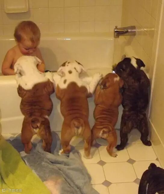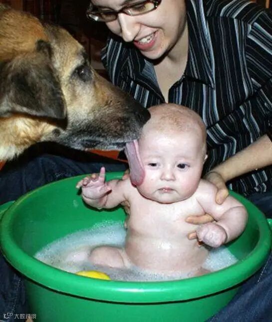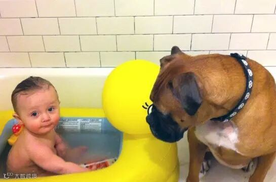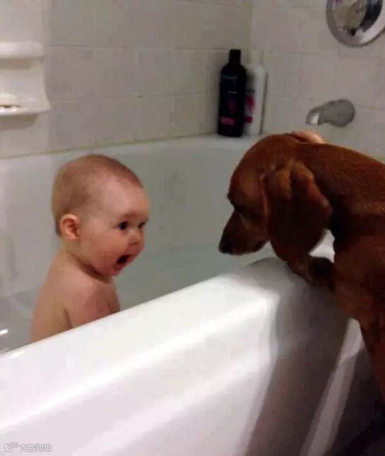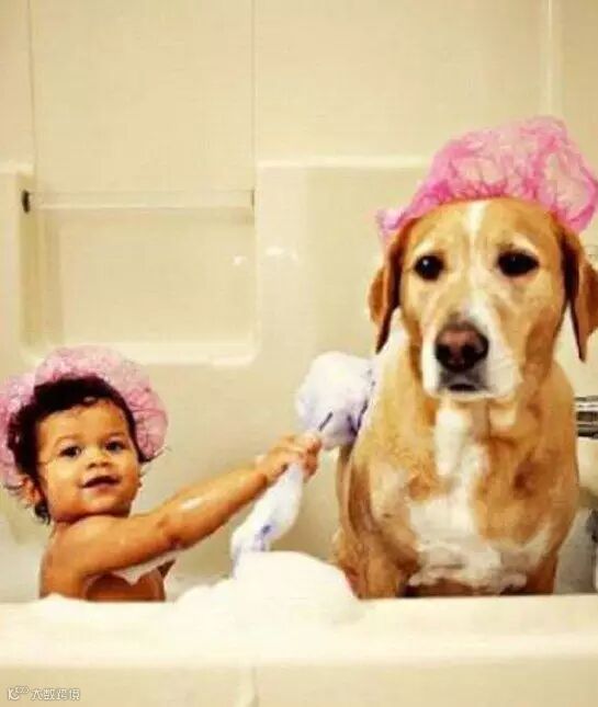 “你没了我可怎么走路呀?”这只狗狗和宝宝的感情非常非常深,和这个小浴缸一样深。