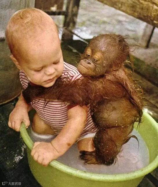 回到50年代。即使是在黑白年代,和宠物洗澡的照片还是一样可爱!