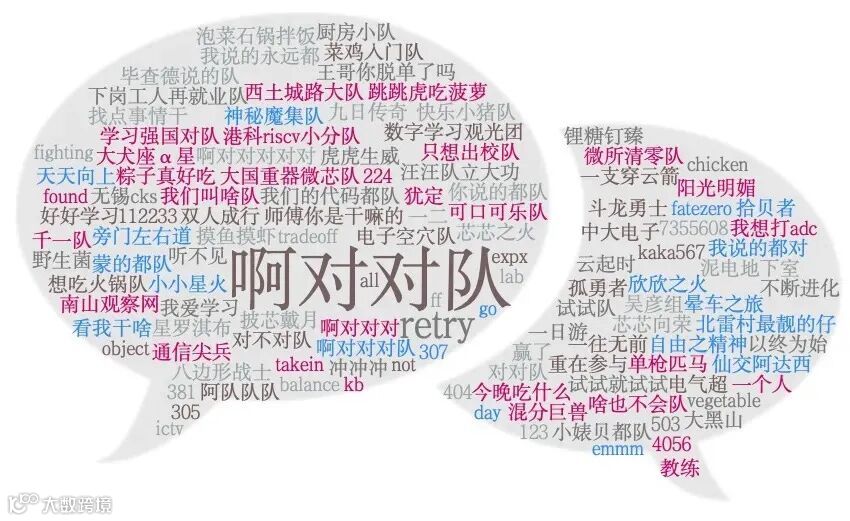 现在的学生能力出众、风趣幽默,就连简单的队名也是妙趣横生,各种“对”“队”的文字组合,“粽子”“可乐”“火锅”“野生菌”等等,一切事物皆可入队名。有趣的队名,超强的队员,和谐的团队氛围,相信每一支队伍都能在这场竞赛中有所收获、有所成长。