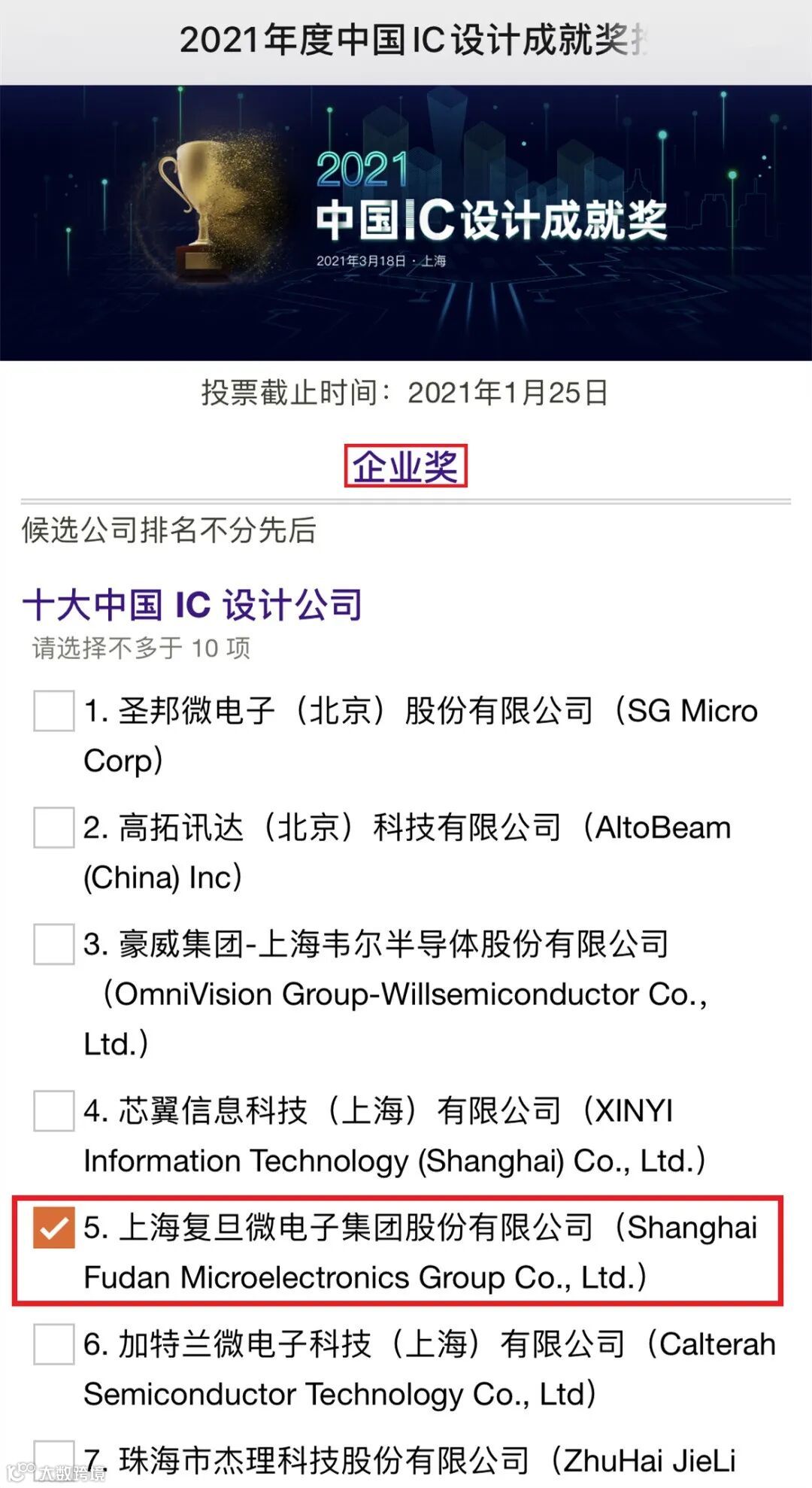 1、十大中国IC设计公司,请投5号复旦微电子集团;