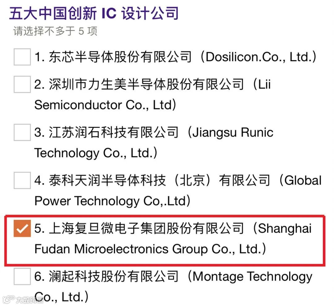 2、五大中国创新IC设计公司,请投5号复旦微电子集团。