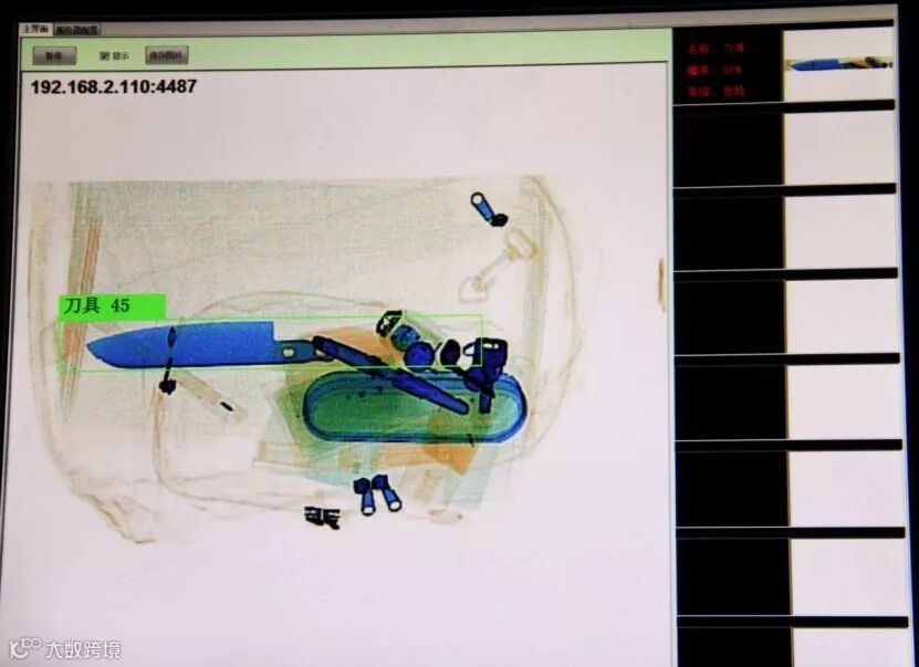 模拟安检人员的工作方式,利用“图像识别技术”来对经过安检机的X光图片进行识别,检测其中的违禁品。采用“卷积神经网络技术”相关技术,可以检测到图片中的物品类别及其位置,并在图片中画出对应的提示框。