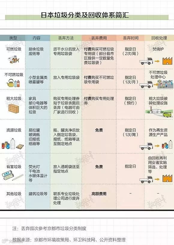 相较于上海目前实施的垃圾分类政策,不仅分类更复杂,日本对垃圾丢弃的要求也更高,方法复杂、丢弃大多收费、时间地点要求更严格。