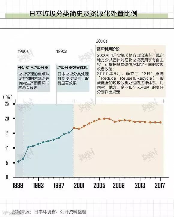 20世纪初,日本实施《地方自治法》,同时提出“3R”原则。2000年以来,日本垃圾处置资源化比例保持在19%左右。