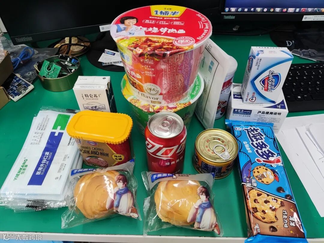 零食饮料方便面,床褥口罩消毒液,盒饭荤素搭配营养健康,来来来,给大家过过眼瘾,果然是我深深爱着的复旦微。