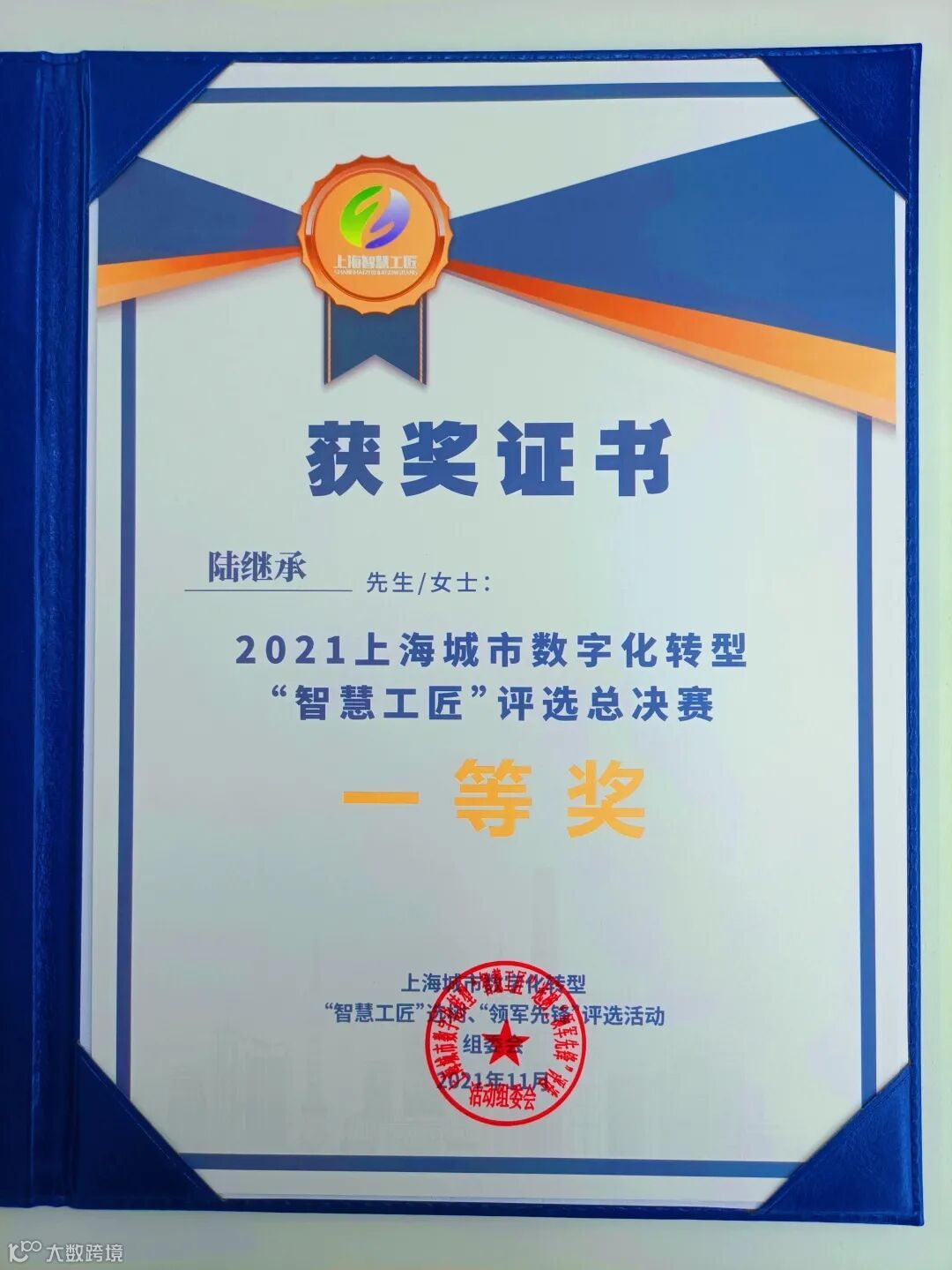 陆继承荣获“智慧工匠”总决赛一等奖