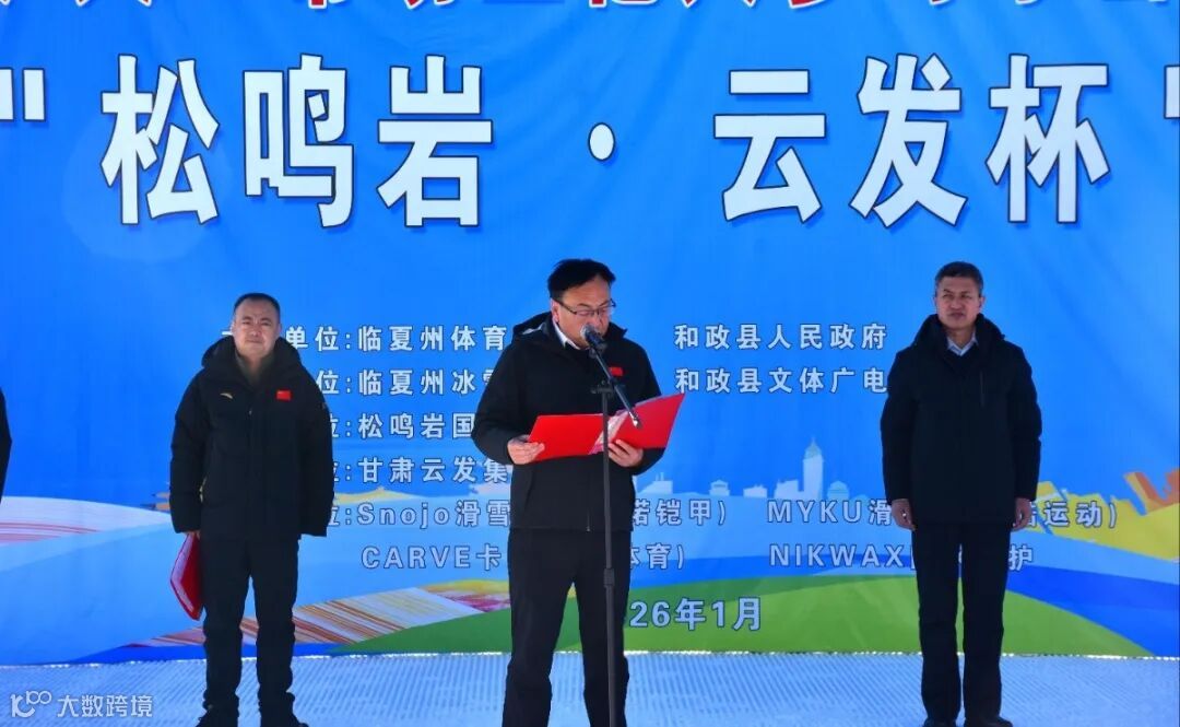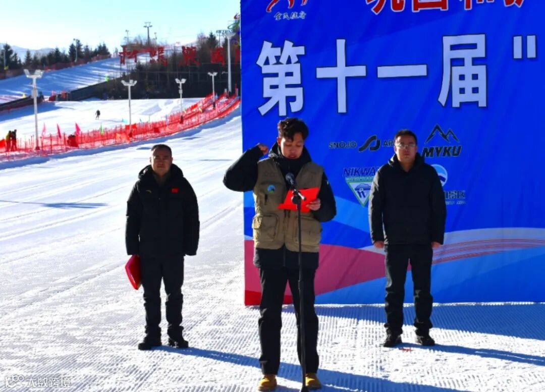 领导登台致辞送上启幕期许与祝福,掌声与欢呼声交织,共同拉开这场冰雪盛会的序幕。