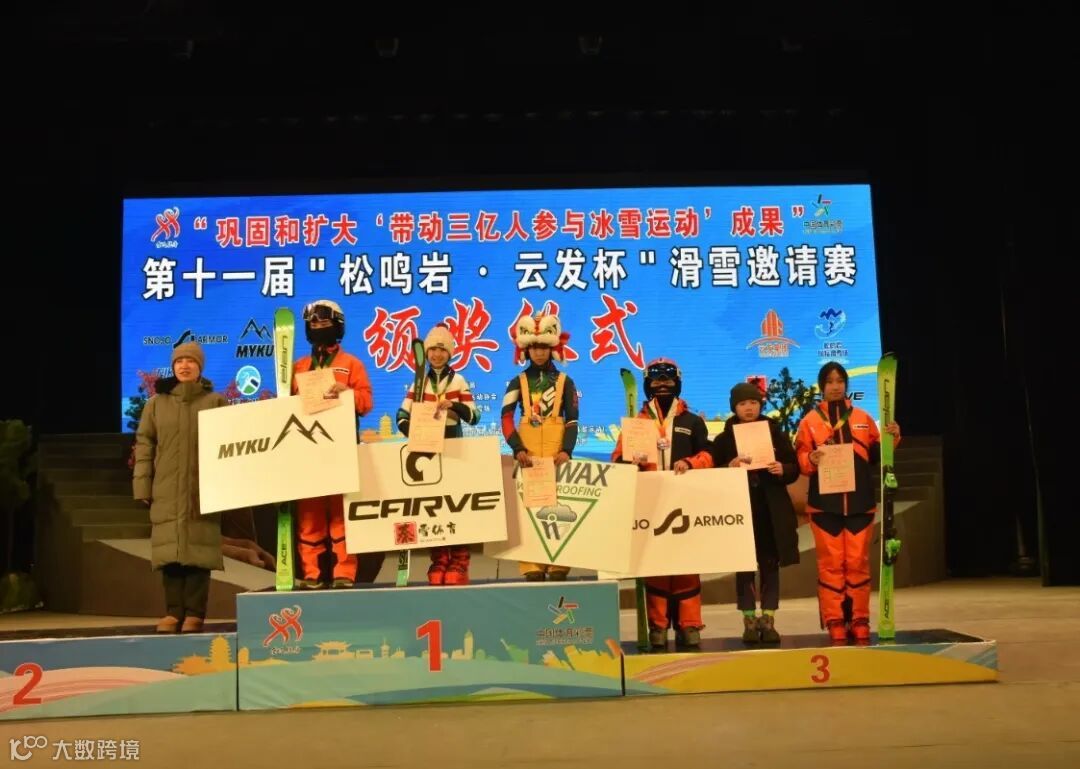 闭幕式上,领导嘉宾为获奖选手及团队颁发荣誉奖项。成人组获奖选手斩获现金奖励与CARVE卡夫、MYKU滑雪服等品牌装备,青少年组获奖选手收获松鸣岩国际滑雪场滑雪储值卡,所有成年组完赛选手均领取了NIKWAX防水洗护专属伴手礼。