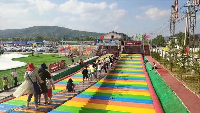 从绵延缤纷的彩虹滑道飞驰而下