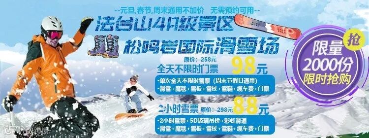 含:2小时滑雪+魔毯+雪具(雪板+雪杖+雪鞋)+缆车费+门票+5D玻璃吊桥+彩虹滑道