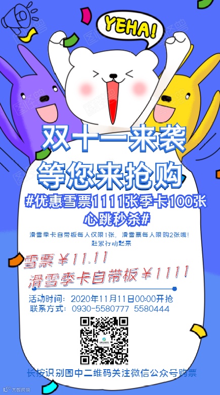 5、滑雪票每人限购2张,滑雪季卡每人限购1张。