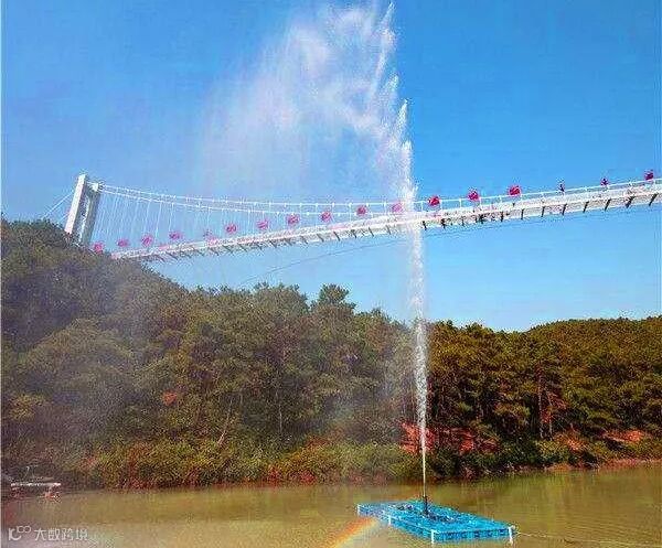 法台山风景区神秘喊泉,与景区的5D玻璃吊桥遥呼相应,自成一景。水色一清的泉潭从5D玻璃吊桥悬空望去,犹如一颗绿宝石镶嵌在聚宝盆中。尤其是通过人的声波激起的奇异水波现象最令人寻味。