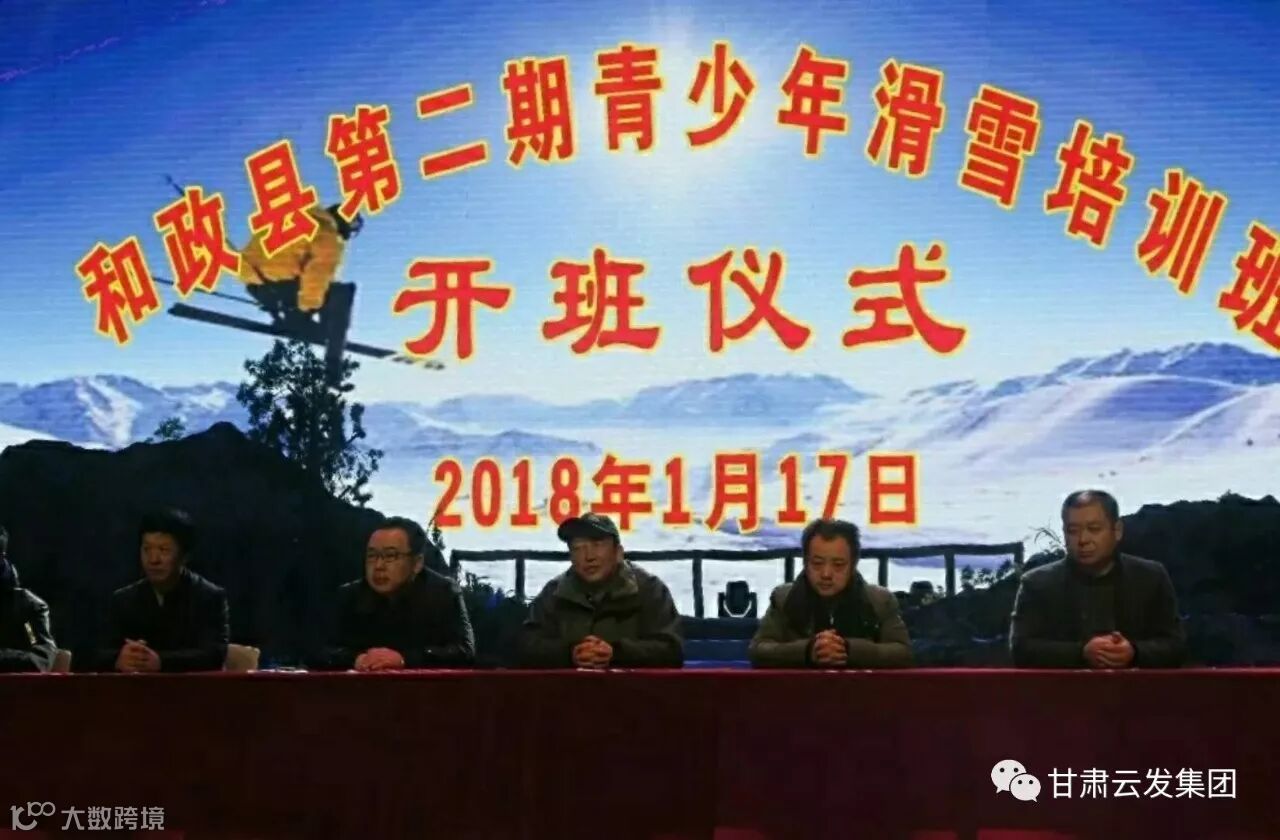 杨部长、周董事长致辞,宣布和政县第二期青少年滑雪培训班开始。