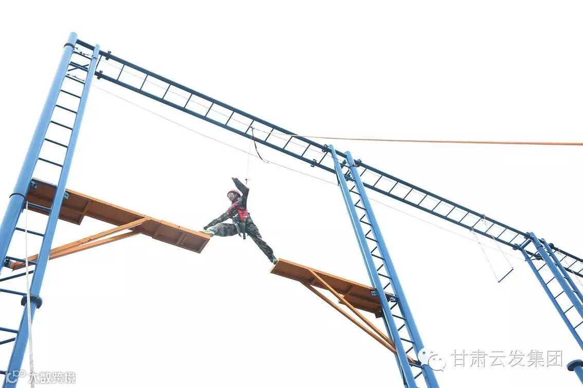 高空断桥———断桥一小步,人生一大步。表面看起来很难的事,其实并没有想象中那么可怕。在工作、生活中,遇到困难并不可怕,怕的是失去解决困难的勇气和信心!心理的障碍是最难逾越的,我们如果要成为强者,首先就必须挑战自己的恐惧感,当我们豁出去一搏,勇敢地跨出一小步,也许就能抓住属于自己的机会,实现人生一大步的跨越。