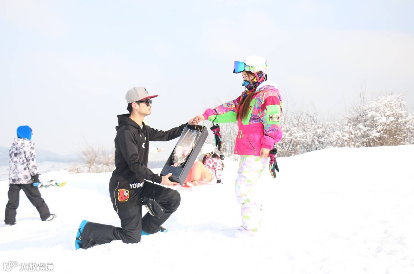 2月14日情人节,松鸣岩国际滑雪场上演了感人一幕,一位男士在雪地上与女朋友浪漫过情人节,并缔结了幸福的约定,当天的滑雪者们也共同见证了这对恋人“山无棱、天地合”的甜蜜誓言。