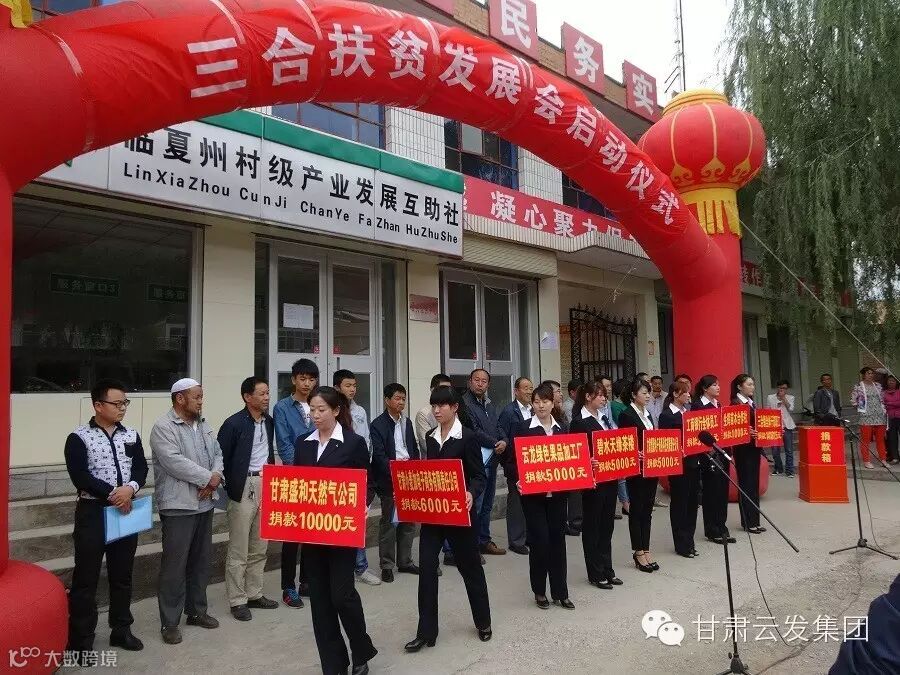 为贯彻省州精准扶贫工作会议精神,积极响应大扶贫战略号召,8月18日,和政县三合扶贫发展会正式成立,县委常委、组织部长李轶前出席本次会议,甘肃云发集团作为参加本次活动的会员企业,为扶贫发展会捐款5万元。