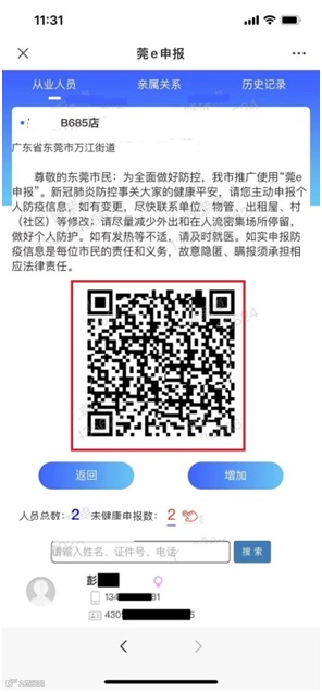 若市民个人情况发生变化,请及时重新申报。如探亲访友人员离莞的,在我市的亲友应及时更新亲友信息,在“省外来莞探亲访友人员在我市的亲友”—“查看历史申报情况”栏,点击“确认离莞”。