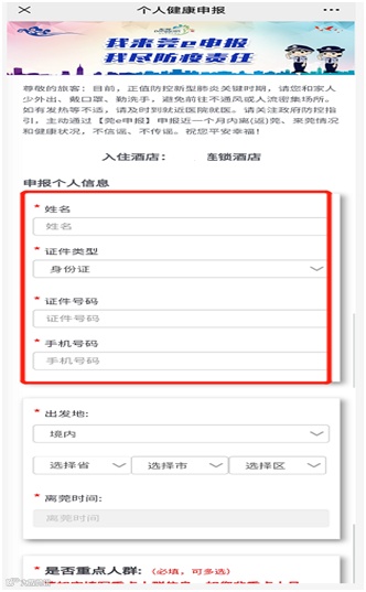 入住旅业人员通过微信“扫一扫”,扫码识别旅业提供的申报二维码,进入申报页面并如实申报个人信息。